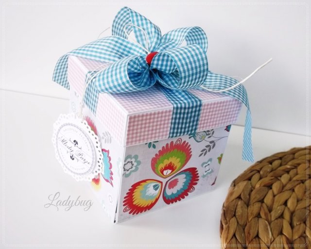 Unikatowe pudełko w łowickie wycinanki to oryginalny sposób na przekazanie życzeń oraz gotówki Młodej Parze. Pudełko po podniesieniu wieczka rozkłada swoje cztery ścianki, na których znajdują się kieszonki (na gotówkę lub kupony lotto).