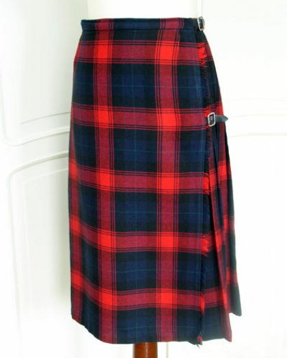 Wełniana spódnica portfelowa, w kratkę czerwono-