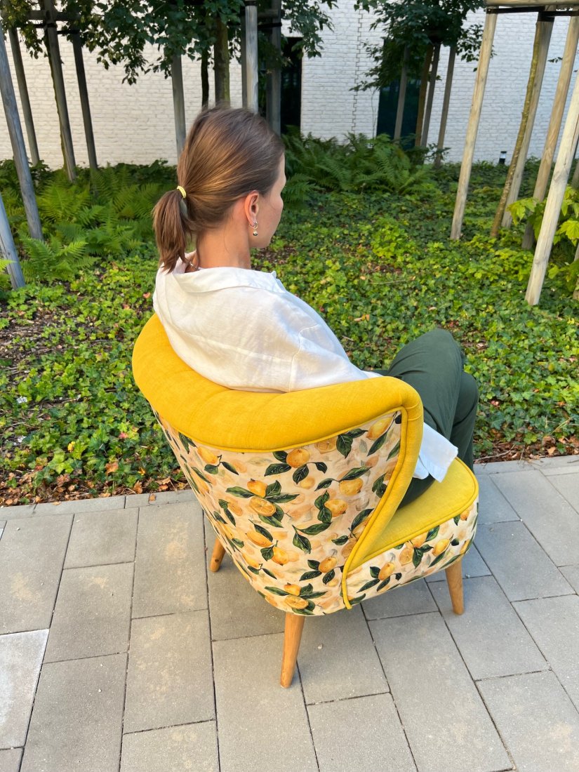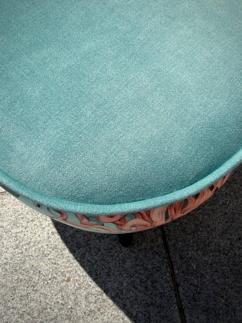 Nasz kultowy model od którego wszystko się zaczęło! Jeden z najmniejszych naszych modeli. Idealnie nadaje się do niewielkich wnętrz tj.: salon, sypialnia, pokój dziecięcy lub do kawiarni, butiku, pracowni, biura, salonu kosmetycznego. Wzorowany jest stylem na lata 50/60, na bazie nowego stelaża drewnianego oraz na sprężynach.