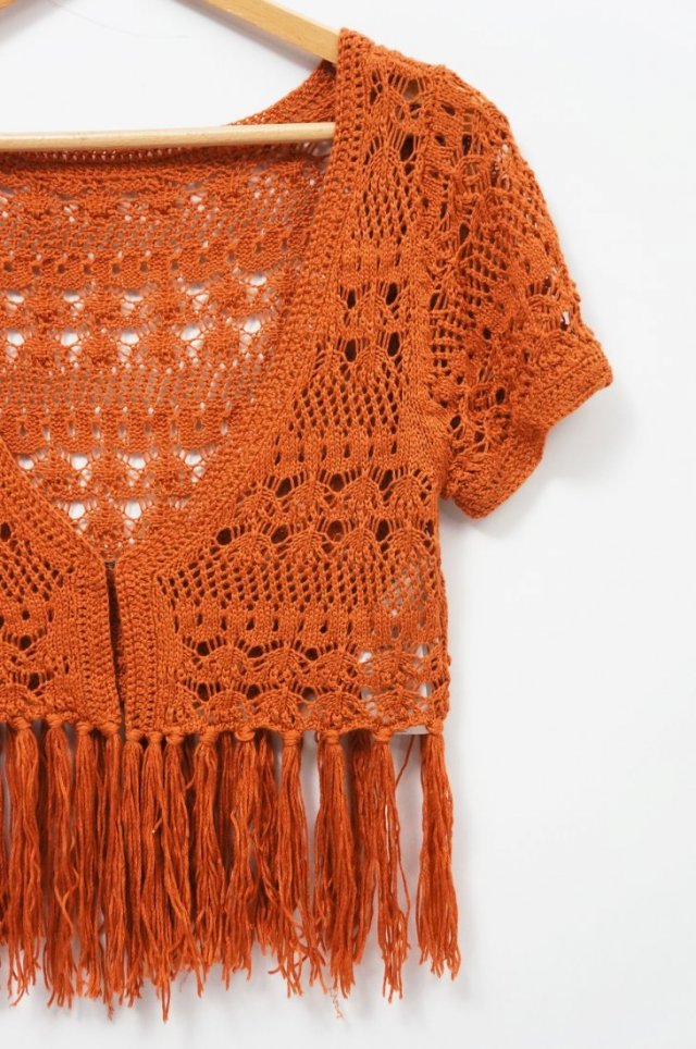 Urocze niepowtarzalne rude bolerko z efektowymi frędzlami i pięknymi wzorami, a wiesz co jest w nim najlepsze?