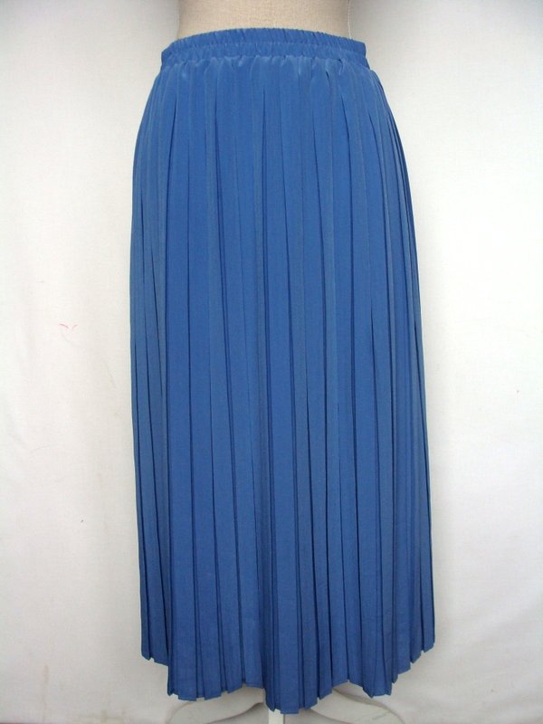 Plisowana poliestrowa spódnica w niebieskim kolorze, z ciekawym układem plis. Na mocnej gumie w pasie. wciągana - bez zamka. Na podszewce.
