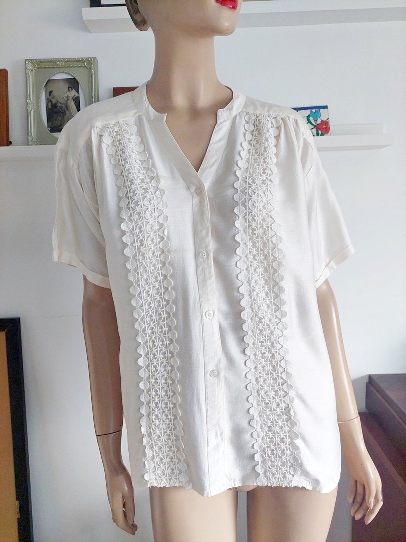 bluzka marki fransa, materiał 85% wiskoza, 15% poliamid. kolor ecru. rozmiar z metki XL. fason oversize. stan bardzo dobry na manekinie o rozmiarze 38.