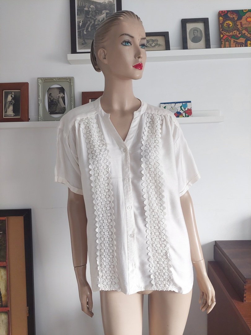 bluzka marki fransa, materiał 85% wiskoza, 15% poliamid. kolor ecru. rozmiar z metki XL. fason oversize. stan bardzo dobry na manekinie o rozmiarze 38.