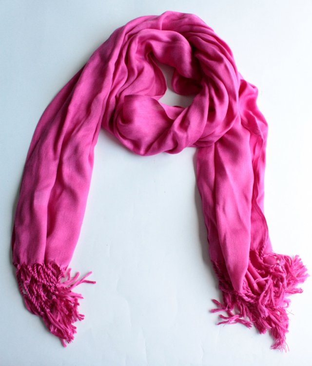 Duży szal w głębokim fuksjowym odcieniu.