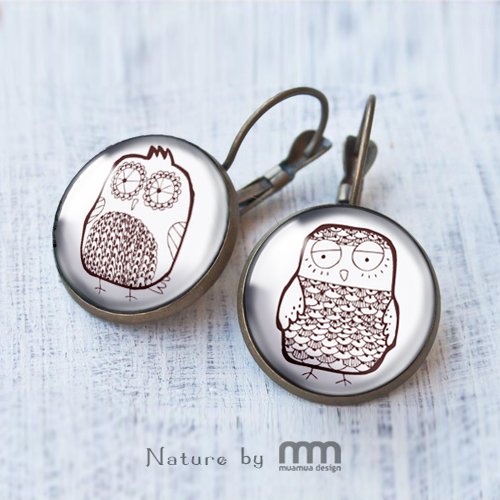 Kolczyki Funny Owl to bardzo kobiece i malutkie dzieła sztuki, które łączą nowoczesność z odrobiną antycznego powiewu. Obrazki pod szkiełkiem to obraz mojego autorstwa.