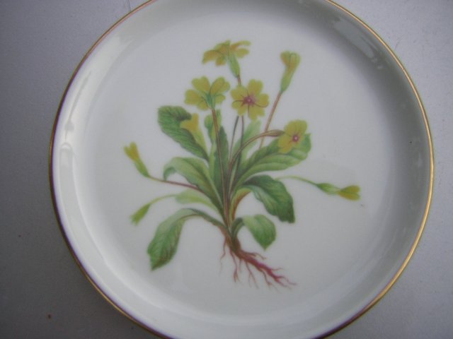 Porcelanowy Talerzyk -podstawek tzw. Konfiturówka z renomowanej wytwórni porcelany FURSTENBERG V - GERMANY . Sygnowany pięknie podpisany Primula Vulgaris. ...I numerycznie 5408 i 025. Biała porcelana, kwiatowe zdobienie. Rant złocony. Wykończenie satynowo - błyszczące.