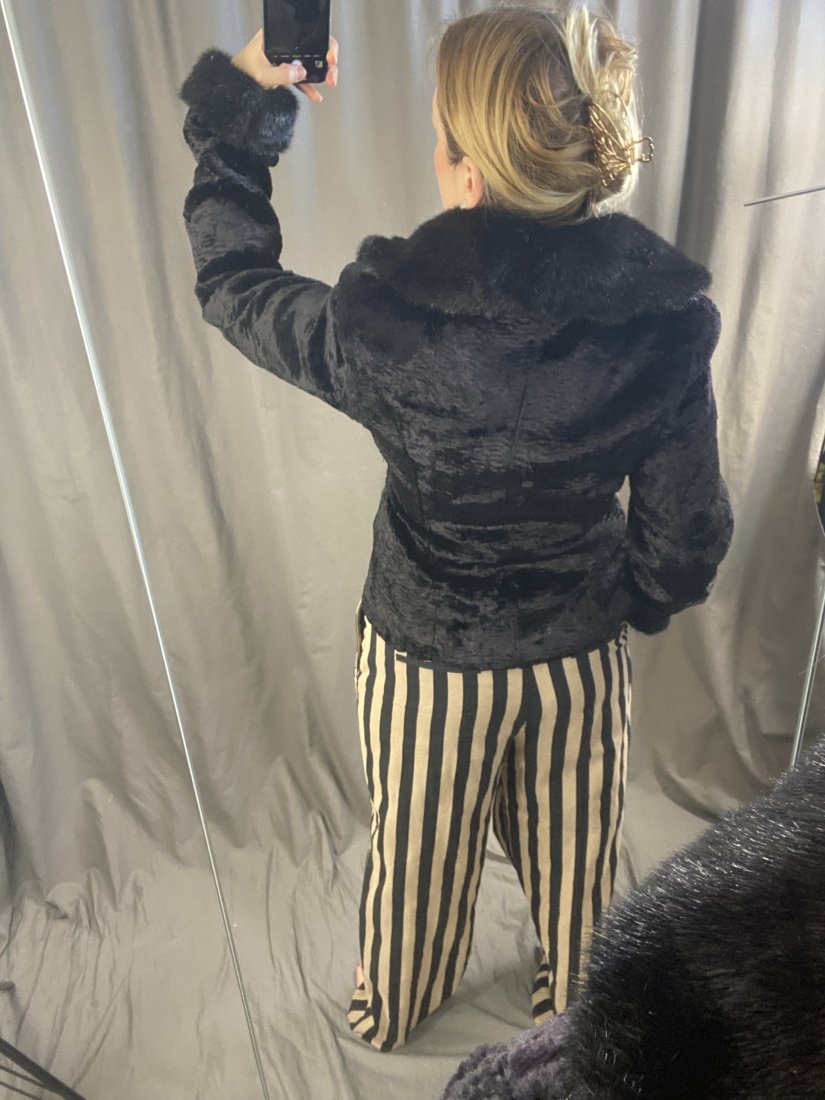 Przepiękne, krótkie futerko (imitacja karakuł). 80% akryl, 20% poli.