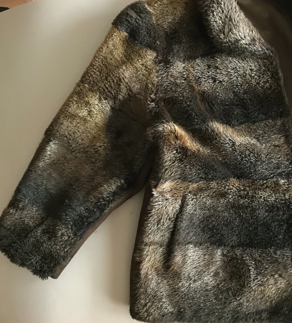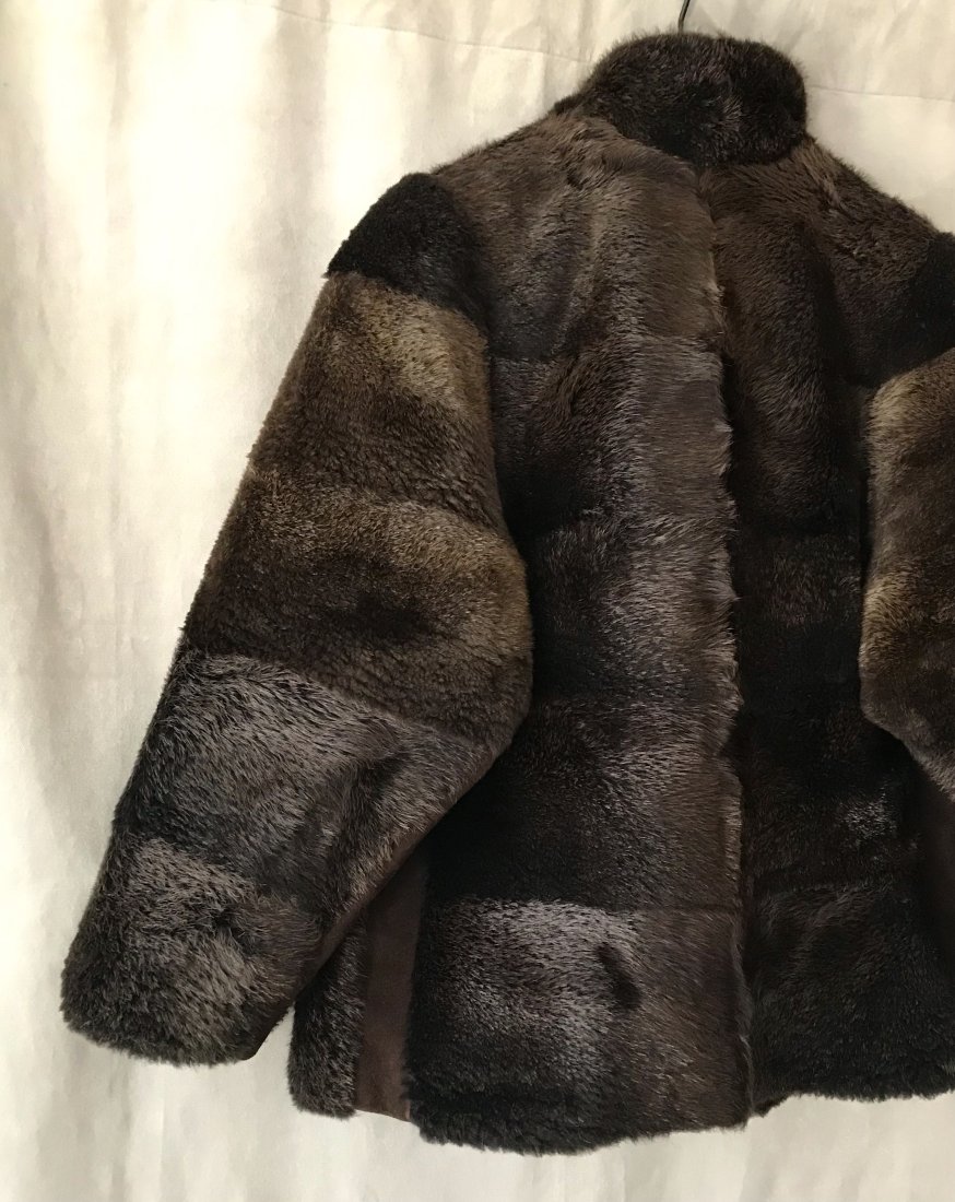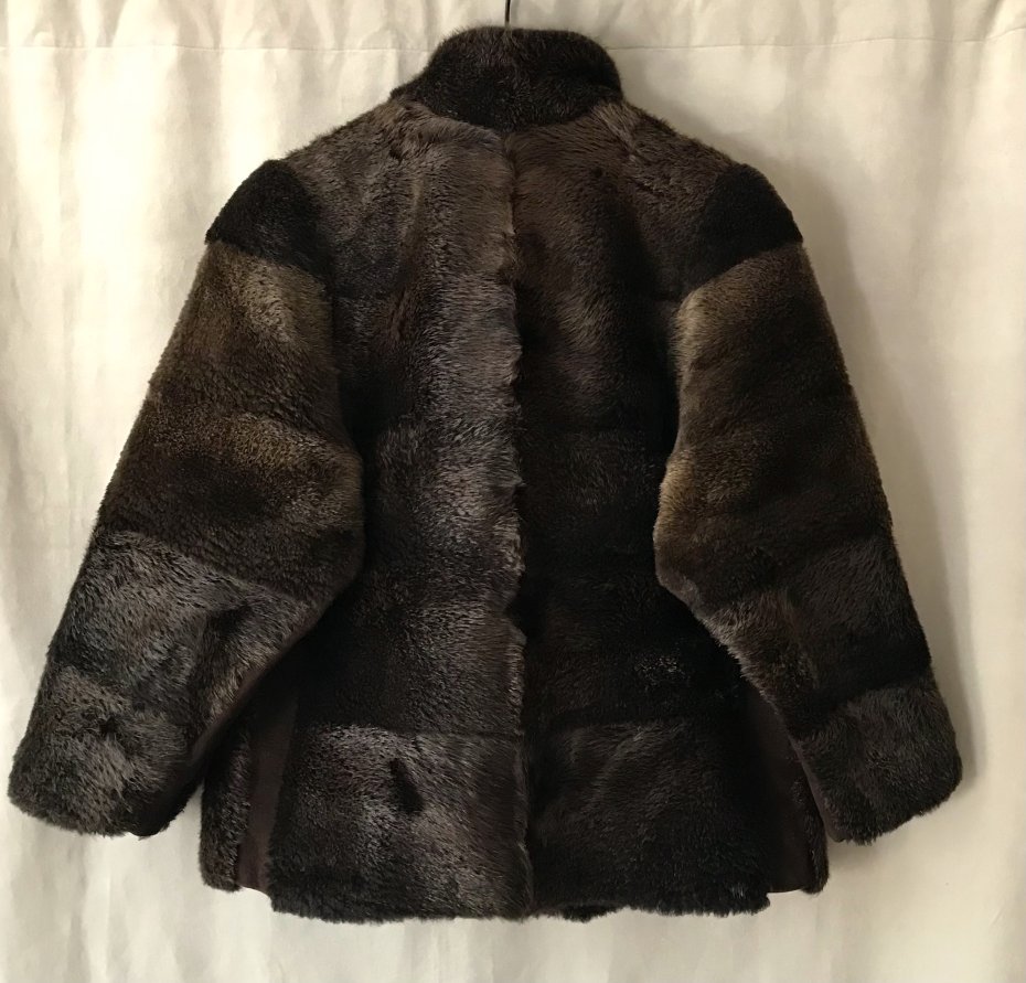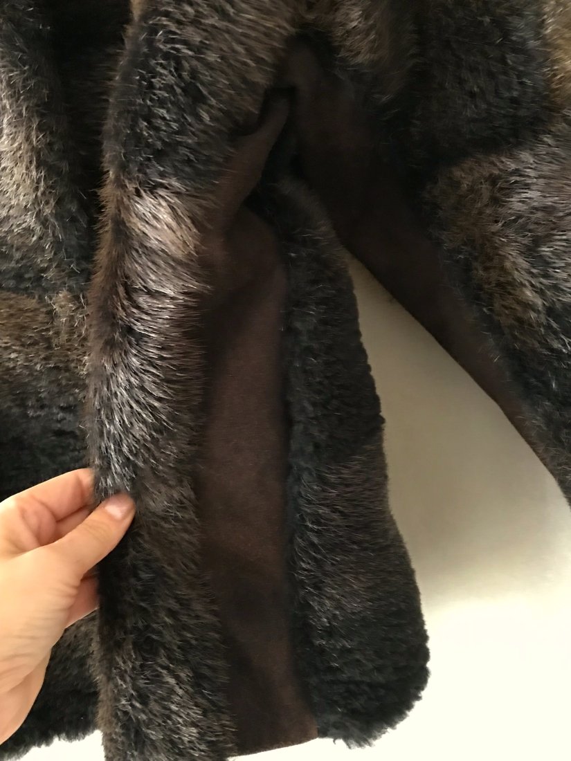 Futro wykonane z soboli, na podszewce. Rękawy lekko kimonowe, zwężane ku dołowi, zapinane haftkami. Po bokach dwie wpuszczane kieszenie.Boki kurtki i rękawów wszyte paski z zamszowej skóry. Futro bardzo miękkie i delikatne.Bez zapachów i przetarć!