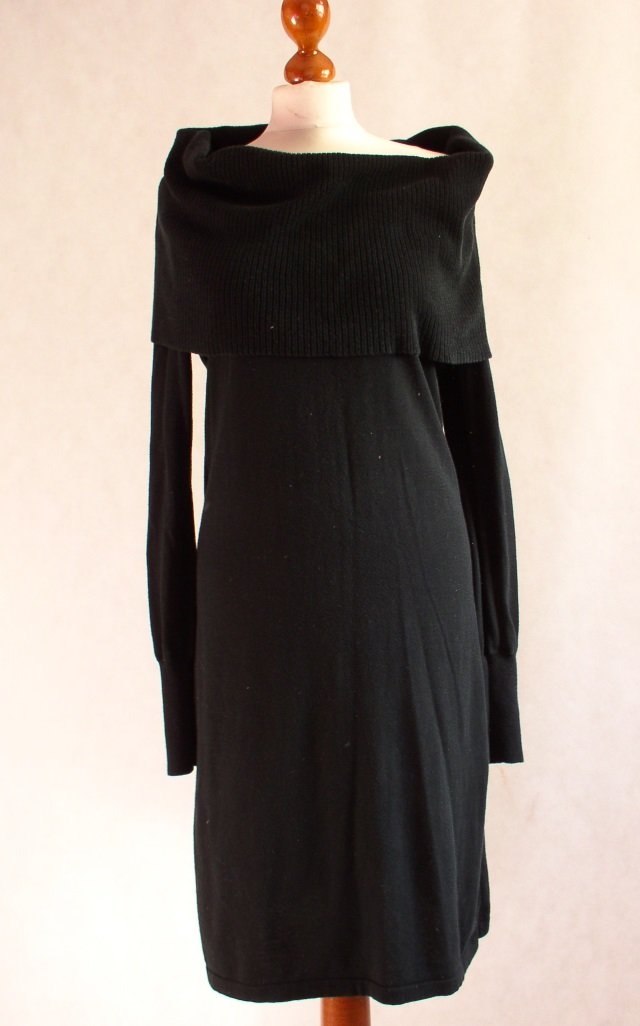 Sukienka z dużym golfem,firmy future maman.Rozmiar S.Dzianina 82% bawełna+155 nylon+3% elastan.Prosta,dól zakończony podwójną listwą.Rękaw długi,zakończony mankietem z rozcięciem + marszczony na ramieniu.Stan bardzo dobry.Długość 98 cm.pod pachami 102 cm.pas 82 cm.biodra 96 cm.