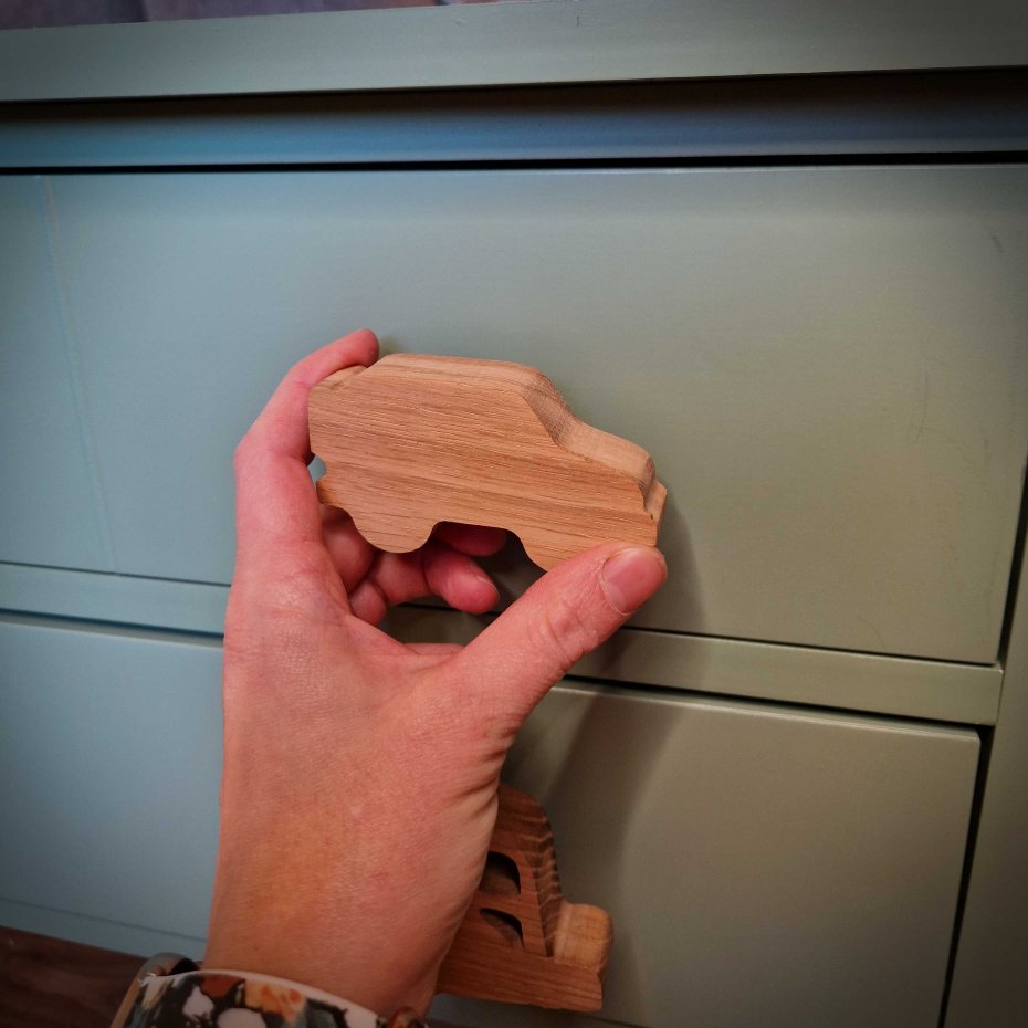 Dla małych odkrywców i fanów przygód stworzyliśmy wyjątkową drewnianą gałkę do mebli w kształcie dżipa – auta, które gotowe jest ruszyć w każdą wyprawę, nawet tę najbardziej dziką! To idealny uchwyt do pokoju dziecka, które kocha samochody, podróże i świat pełen przygód.