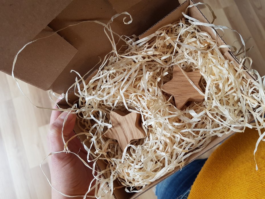 Każda gwiazdka jest unikalna, ponieważ naturalne drewno dębowe różni się usłojeniem i odcieniem.