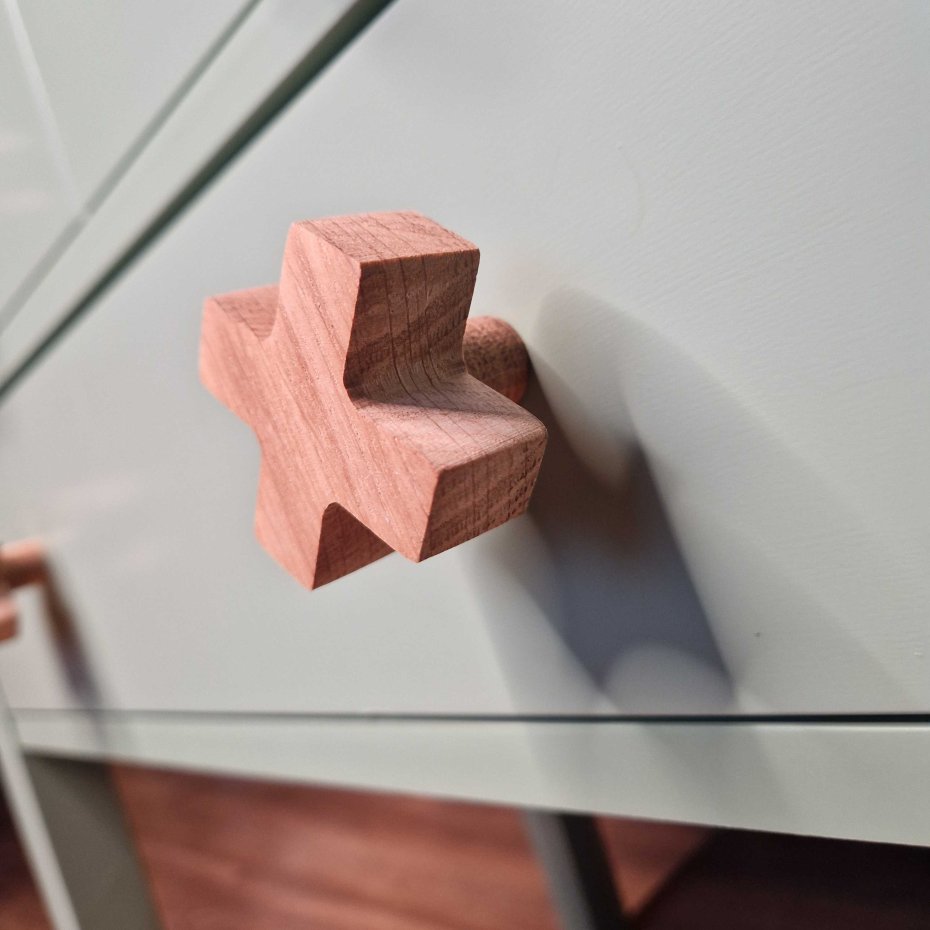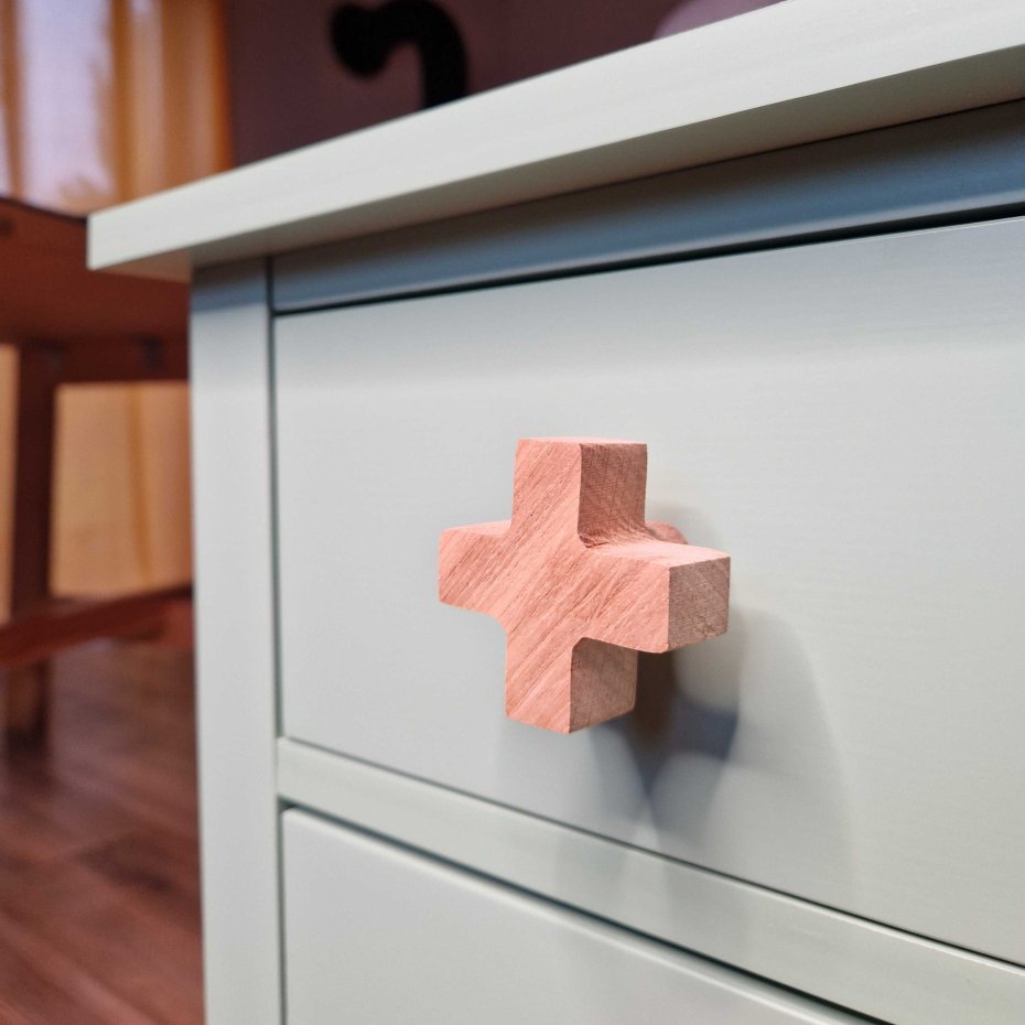 Stylowa drewniana gałka do mebli w kształcie litery "X" (plusa) to nowoczesny, a zarazem naturalny akcent, który świetnie sprawdzi się w pokojach nastolatków, dorosłych, a także w przestrzeniach w stylu boho, skandynawskim czy minimalistycznym. Jej geometryczna forma i ciepło naturalnego drewna tworzą idealne połączenie prostoty i charakteru.