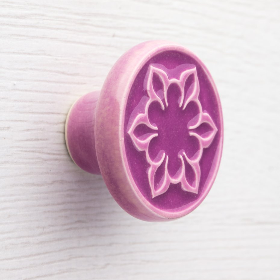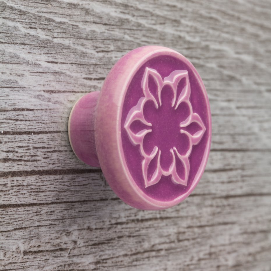 Ceramiczne gałki do mebli - ręcznie wykonane, ornamentowe, wg własnego projektu. Wykonane z jasnej gliny, pokryte szkliwem o satynowym połysku, wypalone dwukrotnie w wysokiej temperaturze.