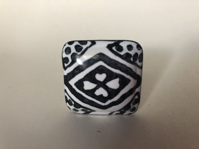Ceramiczne - gałki do mebli . Nowe. Oryginalne ręcznie malowane i szkliwione . Ciekawa wygodna forma .ładne wykonanie . Dwie sztuki z metką - HOME PRODUCED IN INDIA FOR SAINSBURY ‚S. Przyjemne , satynowe w dotyku . 3,5 x 3,5 przekątna 4,5 długość ceramiki 3,5 cm długość ze śrubą 8 cm . Długa śruba / do przycięcia wg, grubości drzwiczek .Stan zachowania bardzo dobry -nowe, nie używane. Nadają się na ciekawy I oryginalny prezent;)