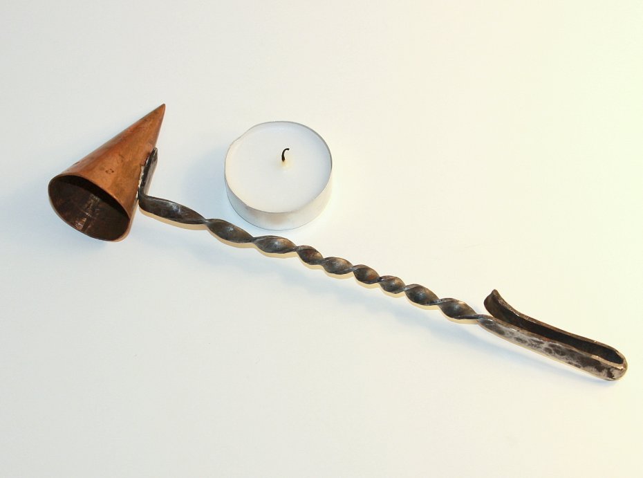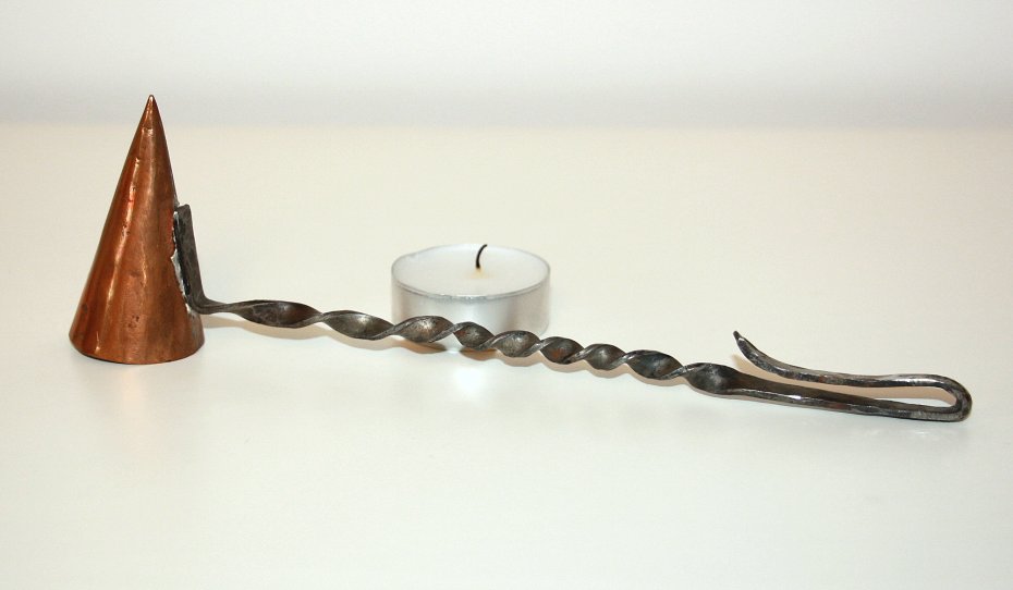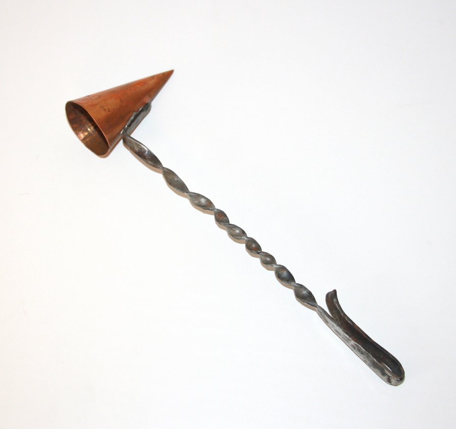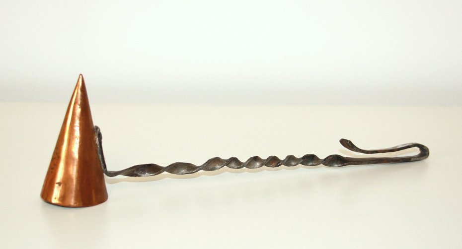 Stare gasidło do świec. Wykonane z metalu (prawdopodobnie mosiądzu). Przyrząd do gaszenia świec. Gasidło pochodzi ze Szwecji, rękodzieło. Piękny i praktyczny, kolekcjonerski przedmiot.