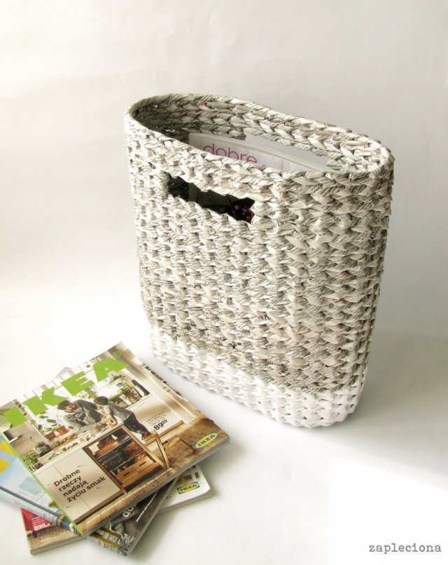 Alternatywa dla wikliny. Recyklingowe kosze, torby, lampy wyplecione z gazet, katalogów, ulotek. Każdy przedmiot jest dokładnie zabezpieczony lakierem akrylowym. Nasze produkty wyróżniają się oryginalnymi kolorami oraz formą. Stworzone z połączenia tradycyjnych metod wyplatania z ideą upcyklingu.