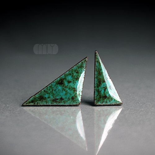 Ceramiczne kolczyki w formie sztyftów, ręcznie wykonane z delikatnej gliny kamionkowej, jednostronnie szkliwione mieszanką zielonych szkliw z efektem plamek, na antyalergicznych sztyftach w kolorze srebrnym. Długość ok. 20mm. Polecam. Termin realizacji zamówienia to 1-2 dni.