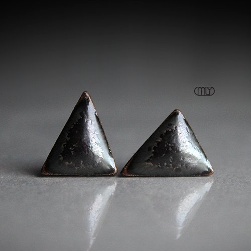 Ceramiczne kolczyki w formie sztyftów, ręcznie wykonane z delikatnej czekoladowobrązowej gliny kamionkowej, jednostronnie szkliwione mieszanką czarnych szkliw z efektem plamek, na sztyftach w kolorze srebrnym. długość ok. 11mm. Polecam . Termin realizacji zamówienia to 1-2 dni.