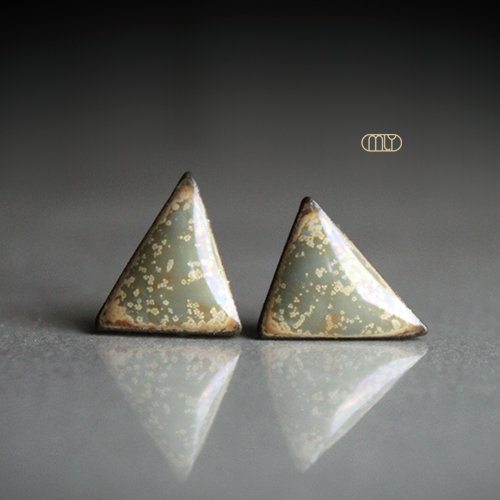 Ceramiczne kolczyki w formie sztyftów, ręcznie wykonane z delikatnej czekoladowobrązowej gliny kamionkowej, jednostronnie szkliwione mieszanką szarozielonych szkliw z efektem plamek, na sztyftach w kolorze srebrnym. długość ok. 11mm. Polecam . Termin realizacji zamówienia to 1-2 dni.