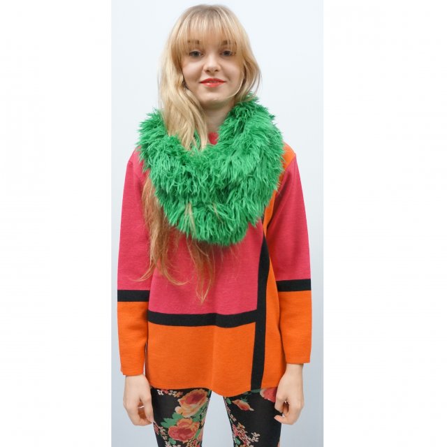 Świetny geometryczny sweter w soczystych kolorach z delikatnym golfem