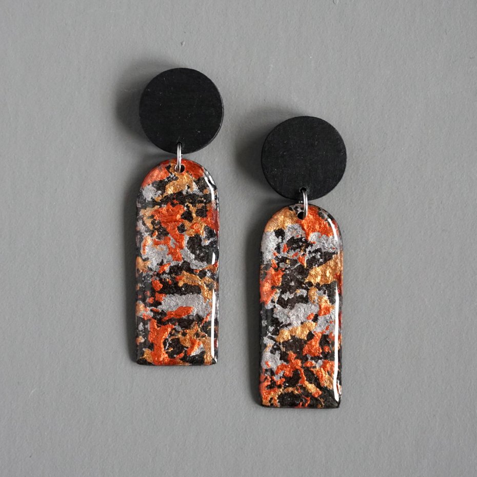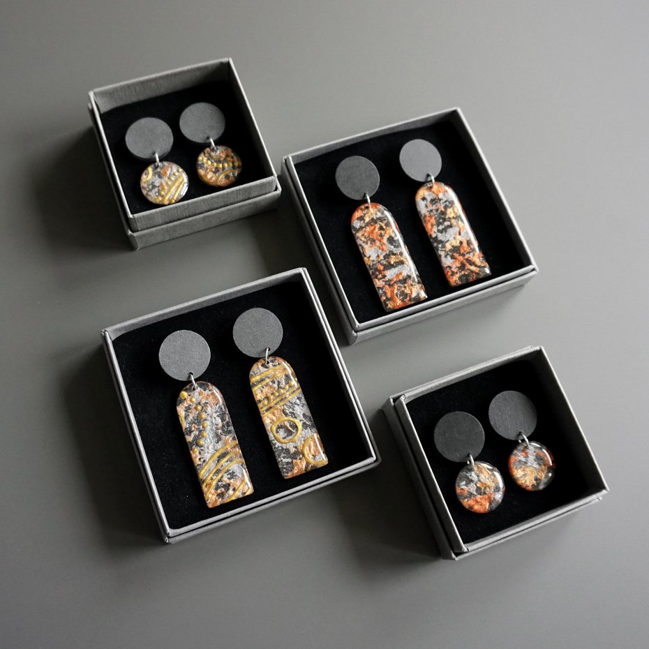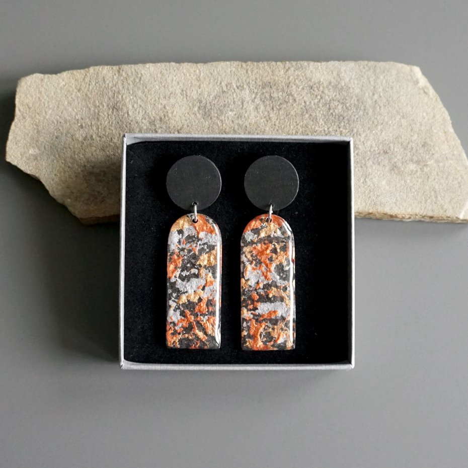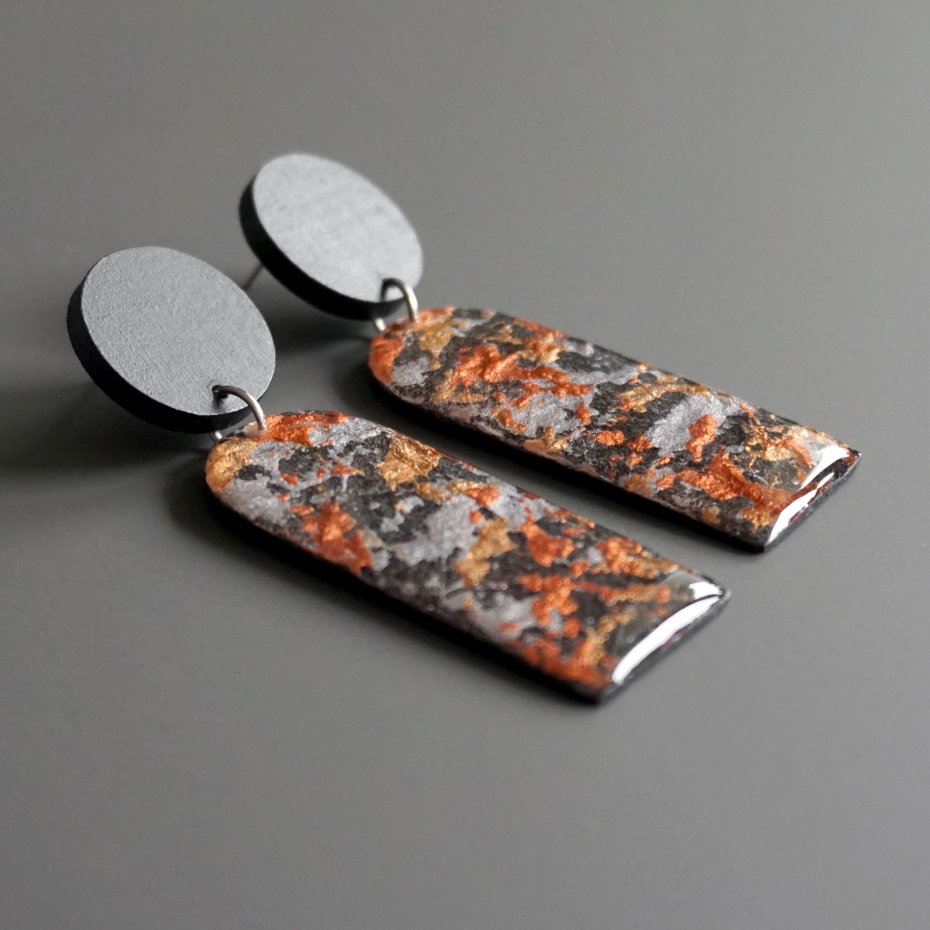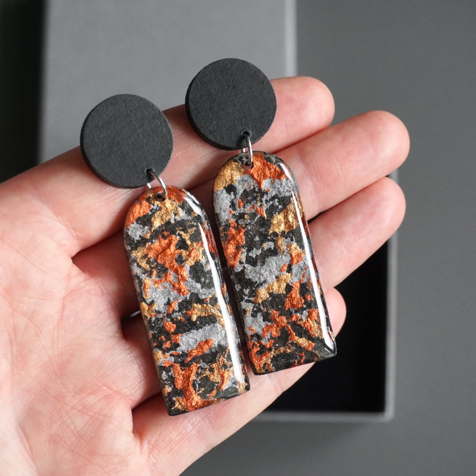 Tagi: #biżuteria autorska, #długie wiszące kolczyki, #kolczyki z masy papierowej, #lekkie nowoczesne kolczyki