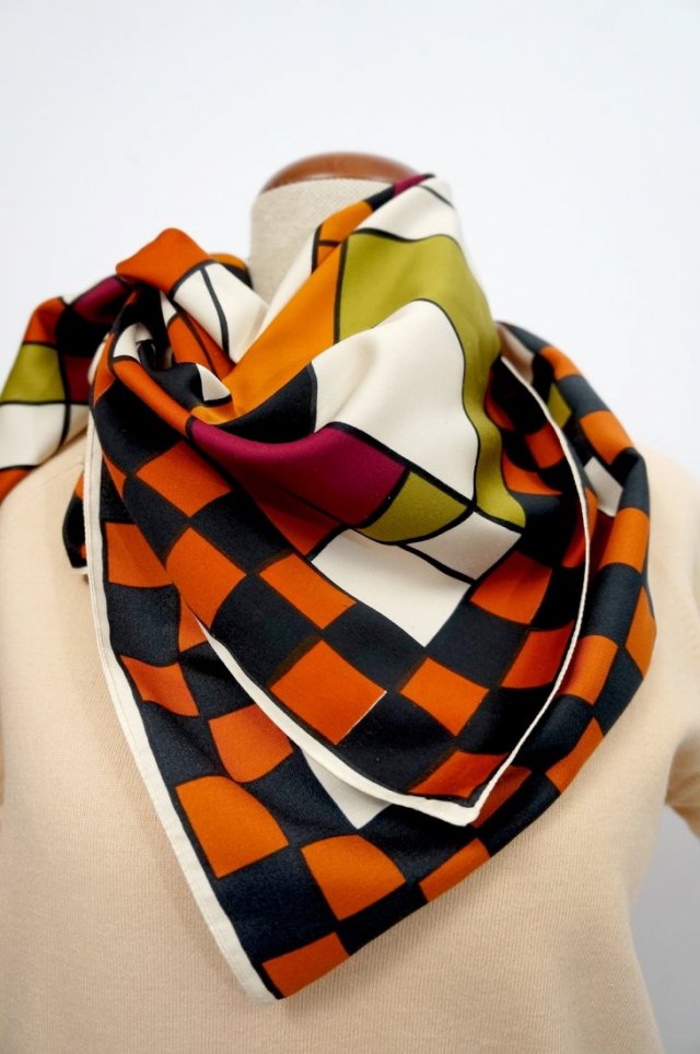 chustka z sztucznego jedwabiu w jesiennych barwach..Stan dobry.