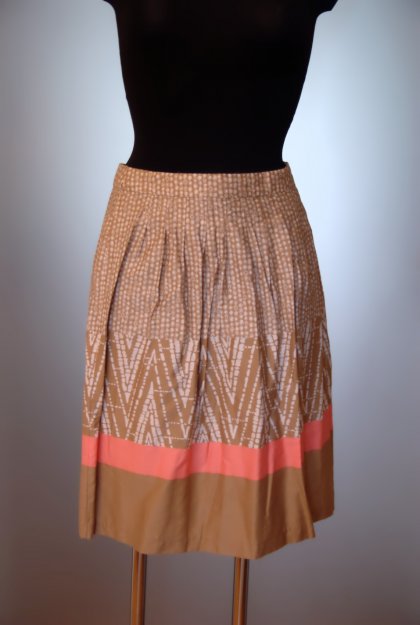 Piękna bawełniana spódniczka rozmiar 14. Śliczny deseń. Kolor nude z białym, przełamane pastelowo różowym akcentem. Z boku zamek i haftka.