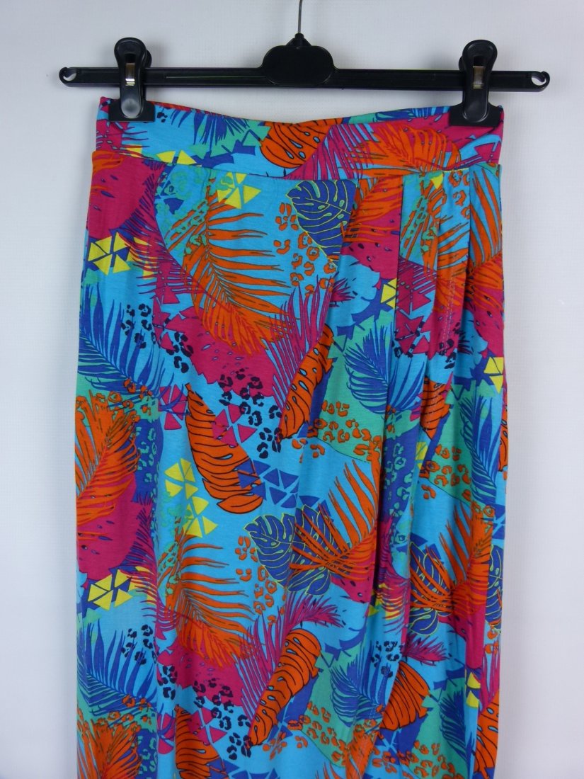 spódnica bez podszewki, zakładana kopertowo, w pasie szersza gumka