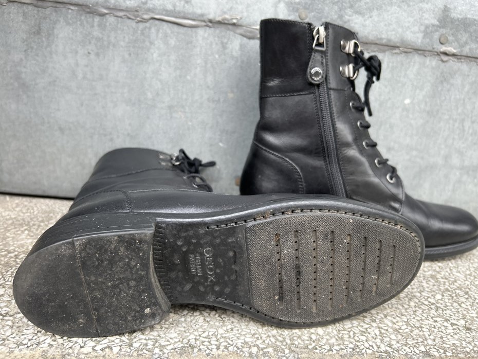 Tagi: #botki czarne geox leather, #buty na suwak sznurowane, #damskie stylowe botki, #geox skóra italian patent