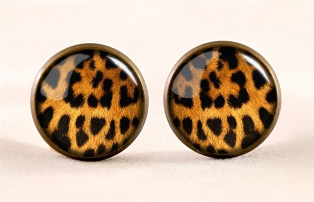 Ręcznie robione kolczyki sztyfty z wysokiej jakości grafiką pokrytą wypukłym, powiększającym szkiełkiem.