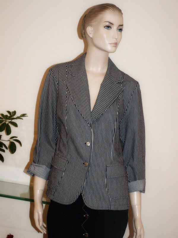 Letni żakiet marki Gerry Weber w biało-czarne paseczki, bez podszewki. Materiał 62% bawełna, 36% poliester, 2% elastan. Stan bardzo dobry, prawdopodobnie nieużywana.. Rozmiar z metki 42, myślę, że trochę większa.
