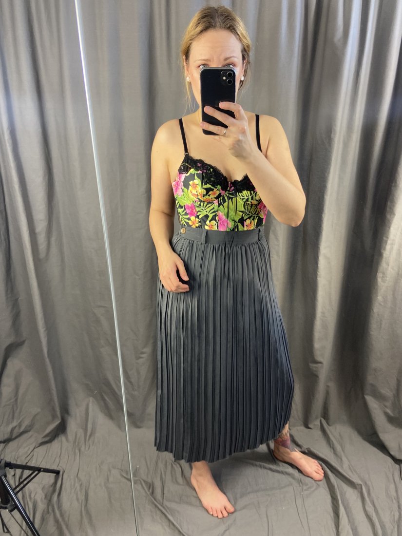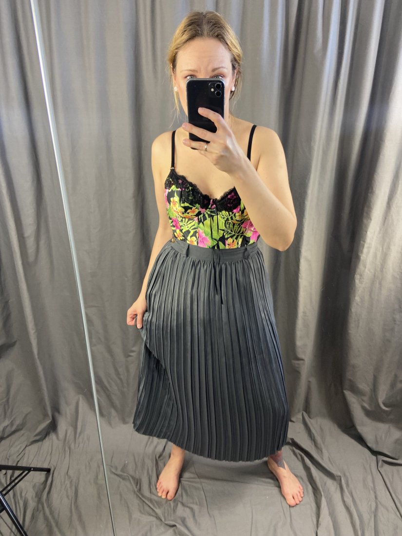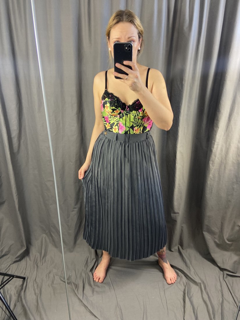 Plisowana spódnica by Gerry Weber. Podszewka z acetatu, wierzch to milusi poliester. Pierwotna cena podobnej to 125funtów.