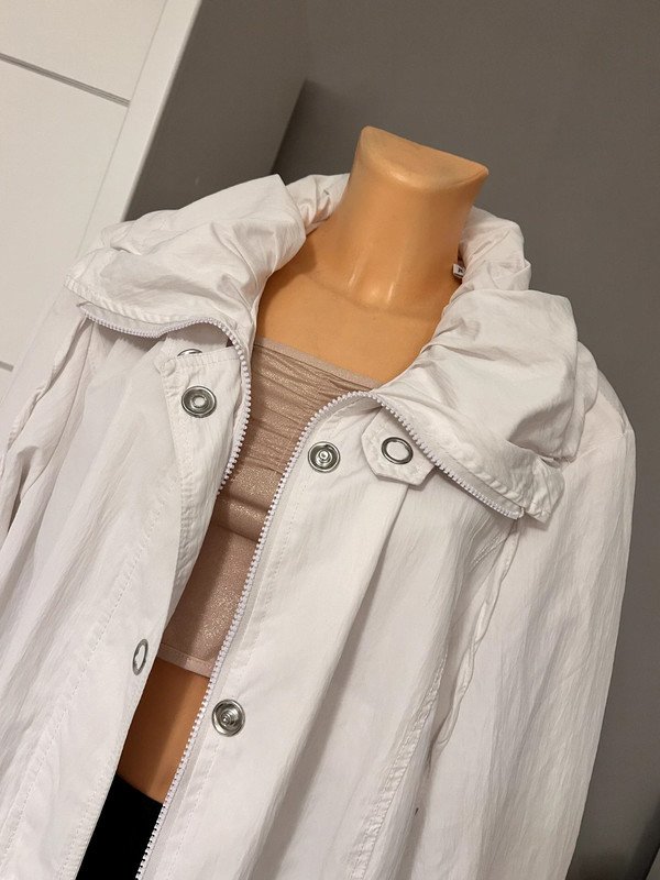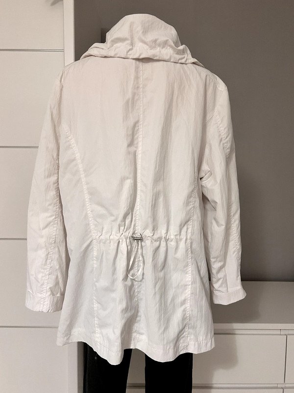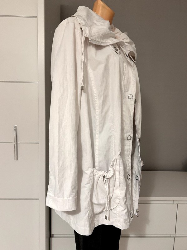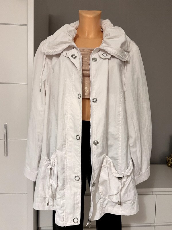 Parka marki Gina Laura, rozmiar z metki to XL 42. Z tyłu w talii posiada regulowanie, więc można dostosować ją do siebie. Z przodu ma kieszenie, jest zasuwana na zamek. Cena katalogowo tej kurtki to 500 zł, dlatego kupując u mnie bardzo dużo oszczędzasz.
