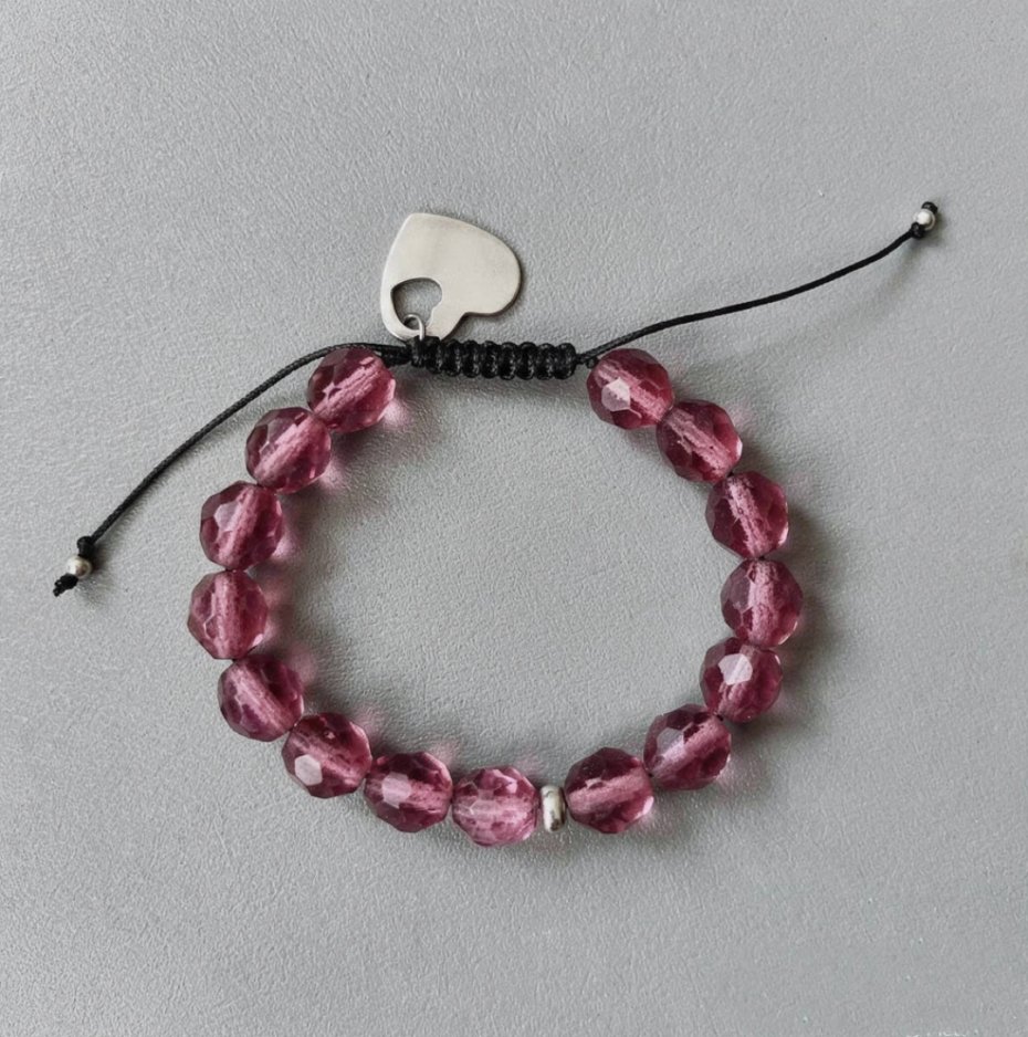 Bransoletka wykonana z jubilerskiego sznurka i fasetowanych kwarców .