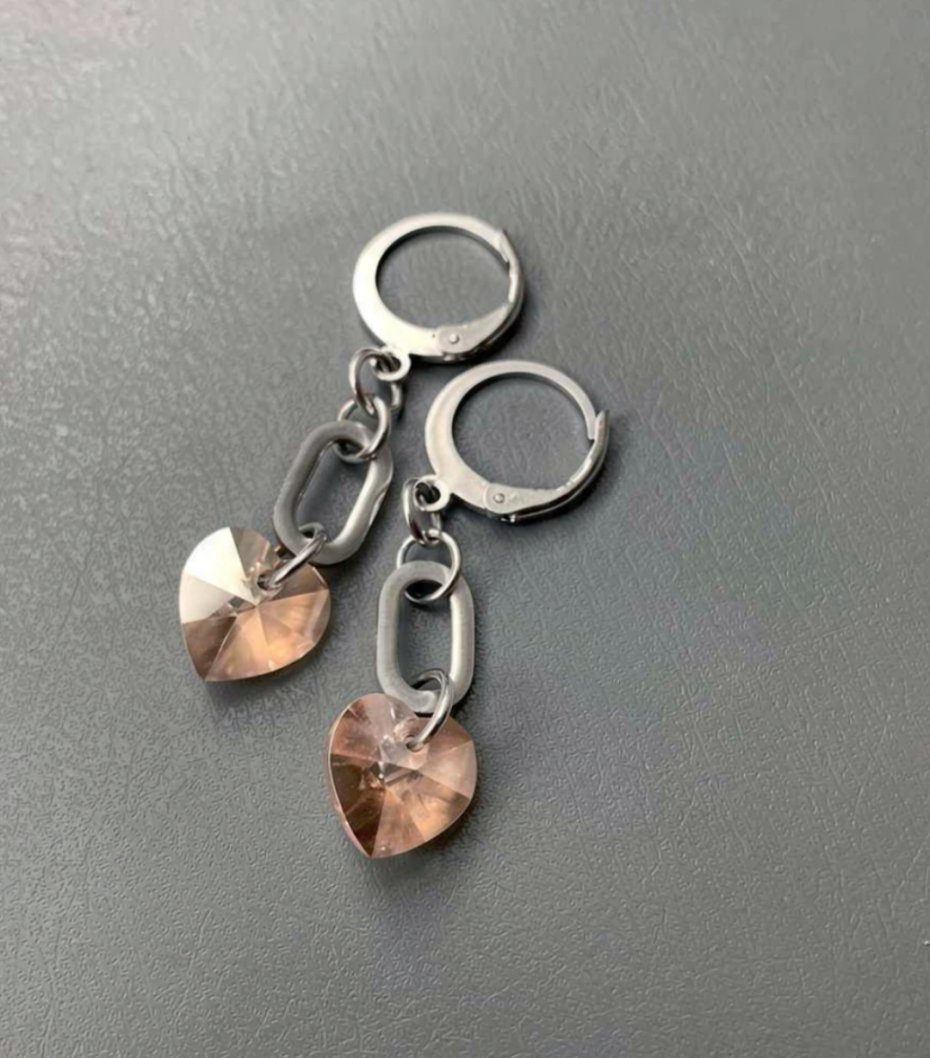 Kolczyki ze stali szlachetnej oraz kryształków Swarovski ( serduszka) 10 mm .