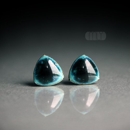 Ceramiczne kolczyki w formie sztyftów, ręcznie wykonane z delikatnej gliny kamionkowej, jednostronnie szkliwione mieszanką turkusowo zielonych szkliw z efektem plamek i subtelnym połyskiem, na antyalergicznych sztyftach w kolorze srebrnym.Średnica ok. 10mm.. Polecam. Termin realizacji zamówienia to 1-2 dni.