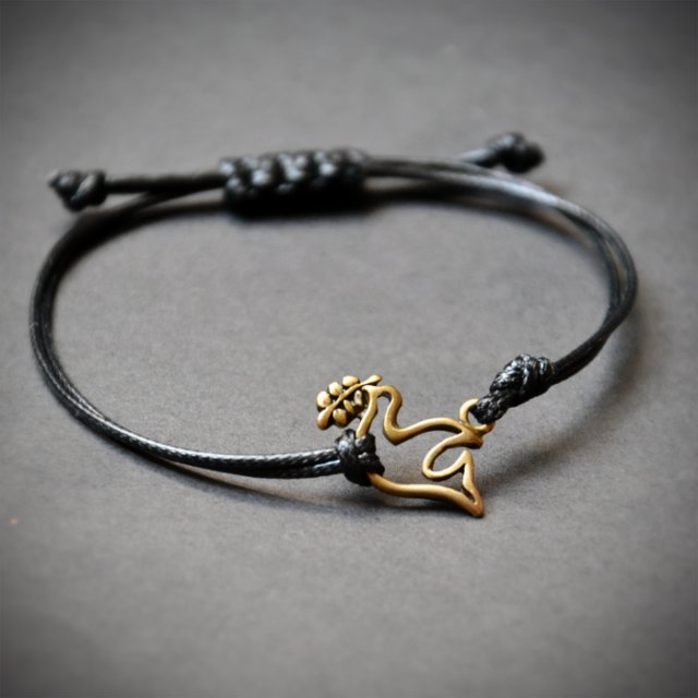 Delikatna bransoletka wykonana z czarnego sznureczka i gołąbka w kolorze antycznego brązu. Z możliwością regulacji szerokości.