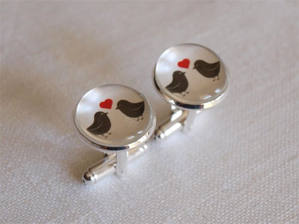 Spinki do mankietów w kolorze srebra z bardzo ciekawą grafiką, przykrytą szklanym kaboszonem. Zapakowane w śliczne pudełko. Idealne na prezent!