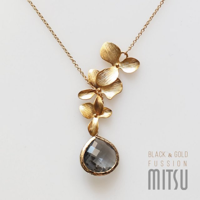 Delikatny ale wyrazisty naszyjnik, zbudowany z listów , drobniutkiego łańcuszka oraz kryształu. Naszyjnik jest wykonany z brązu platerowanego 16 karatowym złotem. Posiada lśniącą teksturę. Mierzy 42,5 cm plus 3 cm wisiorek - jeden listek i kryształ. Krystał mierzy 15 x 18 mm. Naszyjnik podróżuje ładnie zapakowany.