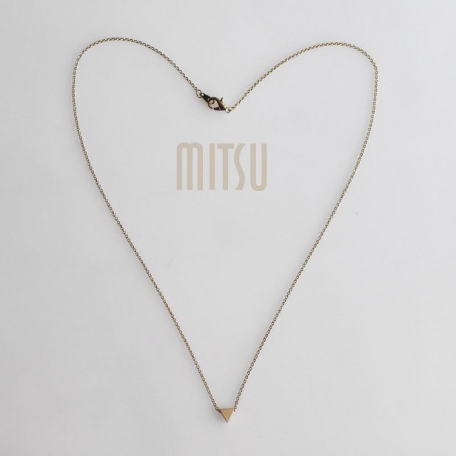 simplicity is the ultimate sophistication... naszyjnik wykonany z brązu platerowanego 16 karatowym złotem. lekki, i delikatny. Trójkąt mierzy 6 x 5,4 mm