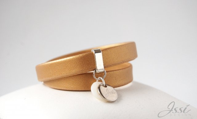 Klasyczna bransoletka ze skórzanego paska w kolorze złotym. Długość regulowana.