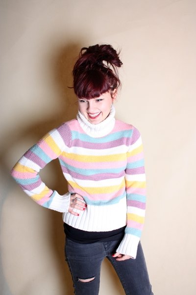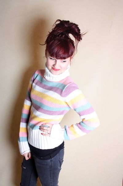Sweter z golfem w kolorowe paski,rozmiar 36, h&m