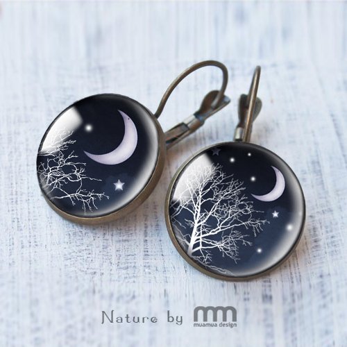 Kolczyki Goodnight Moon to bardzo kobiece i malutkie dzieła sztuki, które łączą nowoczesność z odrobiną antycznego powiewu. Obrazki pod szkiełkiem to autorska ilustracja.
