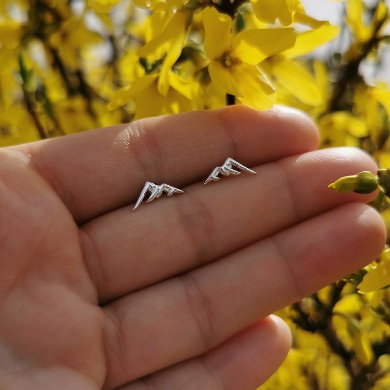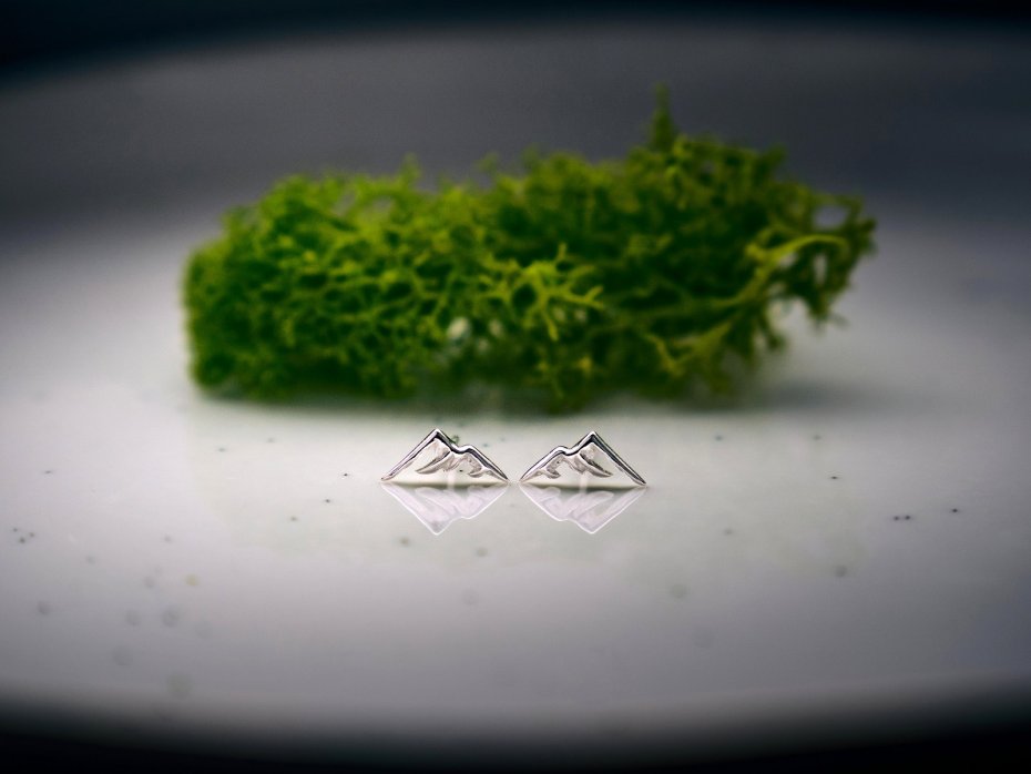 Kolczyki o subtelnym wyglądzie, prezentują minimalistyczną interpretację górskiej scenerii.