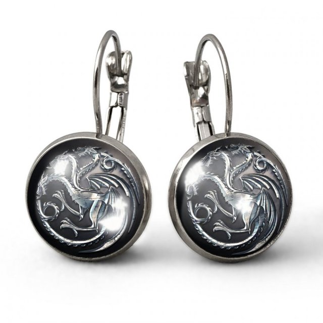 Ręcznie robione kolczyki wiszące z wysokiej jakości grafiką pokrytą wypukłym, powiększającym szkiełkiem.
