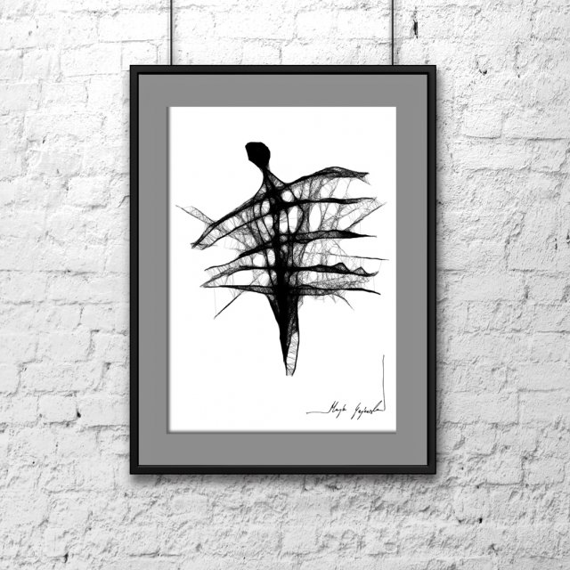 Grafika wykonana techniką mieszaną na papierze białym FABRIANO. Format 30x21cm - (dostępny również format 40x30 cm - cena do uzgodnienia). Grafika oprawiona - czarna, satynowa, aluminiowa rama oraz grafitowe passe partout. Termin realizacji zamówienia to 1-3 dni. Limitowana seria.