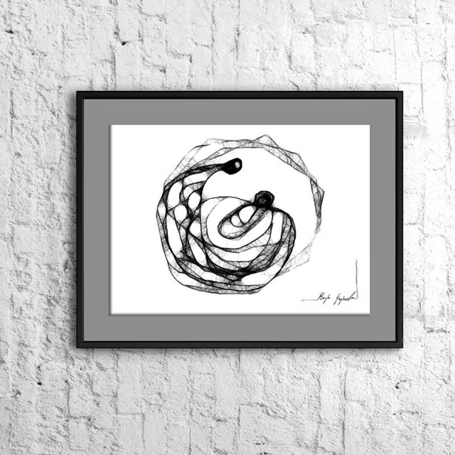 Grafika wykonana techniką mieszaną na białym, matowym o lekko fakturowanej powierzchni, graficznym papierze Canson 160g. Gwarancja jakości w czasie długotrwałego przechowywania. Format 40x30 cm. Praca jest oprawiona - czarna, aluminiowa, satynowa rama oraz grafitowe passe partout. Gotowa do powieszenia na ścianie.