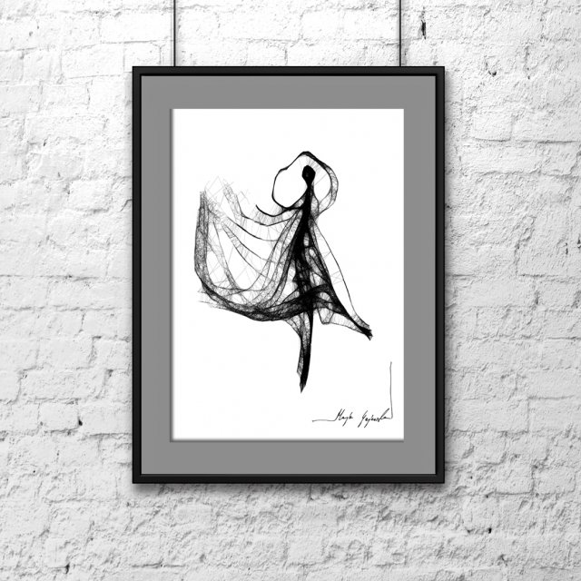 Grafika wykonana techniką mieszaną na papierze białym FABRIANO. Format 30x21cm (dostępny również format 40x30 cm -cena do uzgodnienia). Grafika oprawiona - czarna, satynowa, aluminiowa rama oraz grafitowe passe partout. Termin realizacji zamówienia to 1-3 dni. Limitowana seria.
