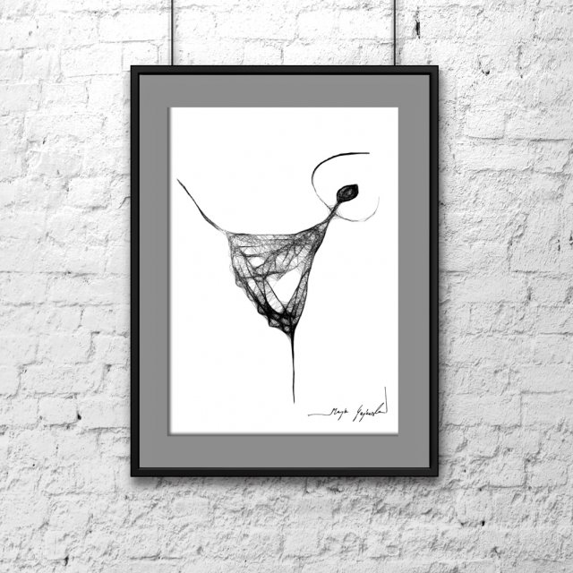 Grafika wykonana techniką mieszaną na papierze białym FABRIANO. Format 30x21cm (dostępny również format 40x30 cm -cena do uzgodnienia). Grafika oprawiona - czarna, satynowa, aluminiowa rama oraz grafitowe passe partout. Termin realizacji zamówienia to 1-3 dni. Limitowana seria.