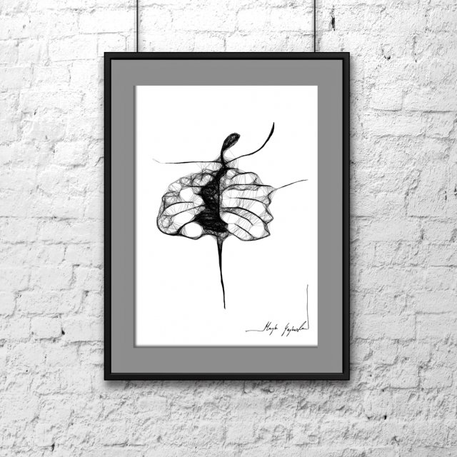 Grafika wykonana techniką mieszaną na papierze białym FABRIANO. Format 30x21cm (dostępny również format 40x30 cm -cena do uzgodnienia). Grafika oprawiona - czarna, satynowa, aluminiowa rama oraz grafitowe passe partout. Termin realizacji zamówienia to 1-3 dni. Limitowana seria.